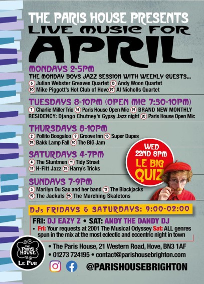 Here are our listings for The Paris House in April.