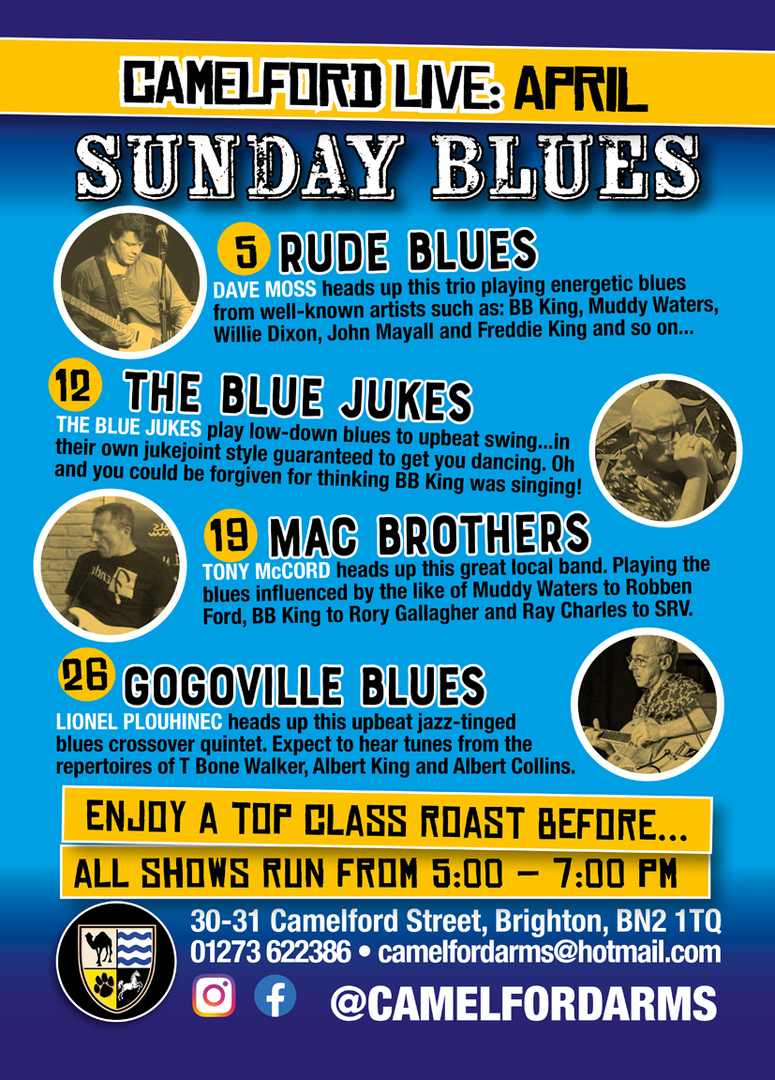 Our sister pub in Kemptown The Camelford Arms is also presenting Live Blues Music every Sunday at 5pm .