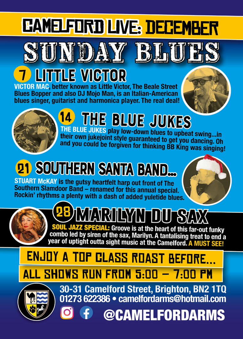 Our sister pub in Kemptown The Camelford Arms is also presenting Live Blues Music every Sunday at 5pm .
