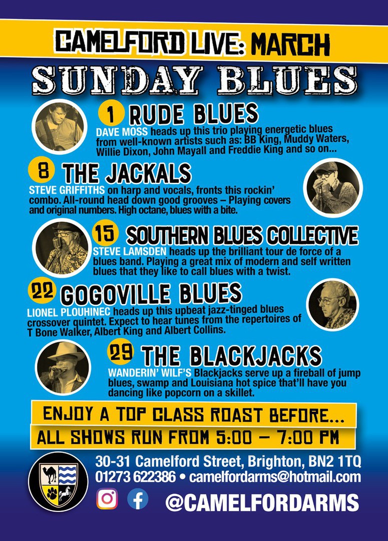 Our sister pub in Kemptown The Camelford Arms is also presenting Live Blues Music every Sunday at 5pm .